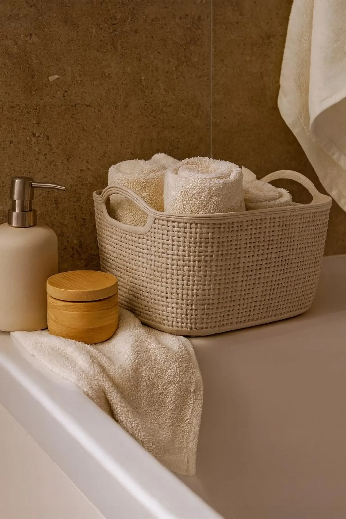 Aufbewahrungskorb mit Griffen 30×19,5×17 cm – Beige