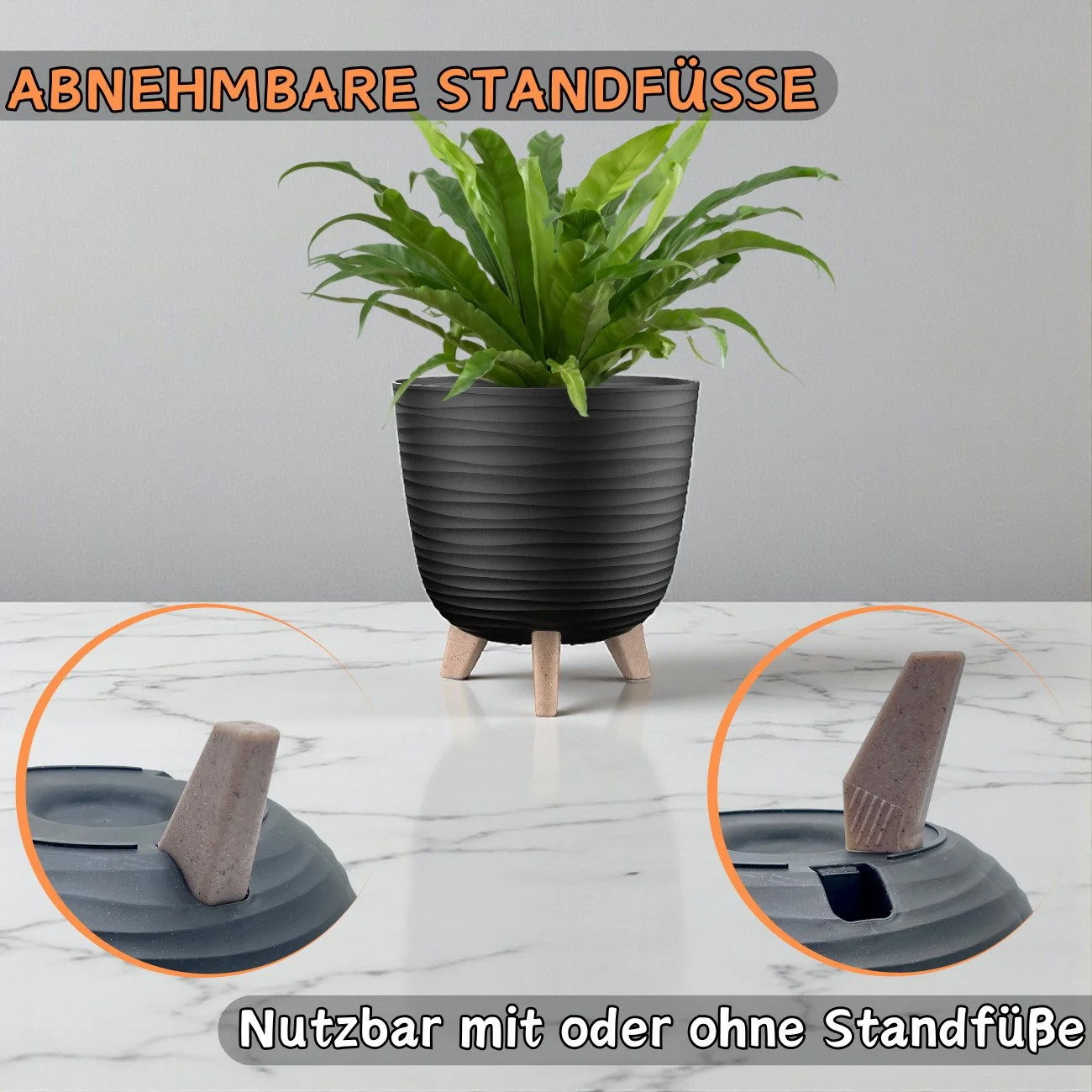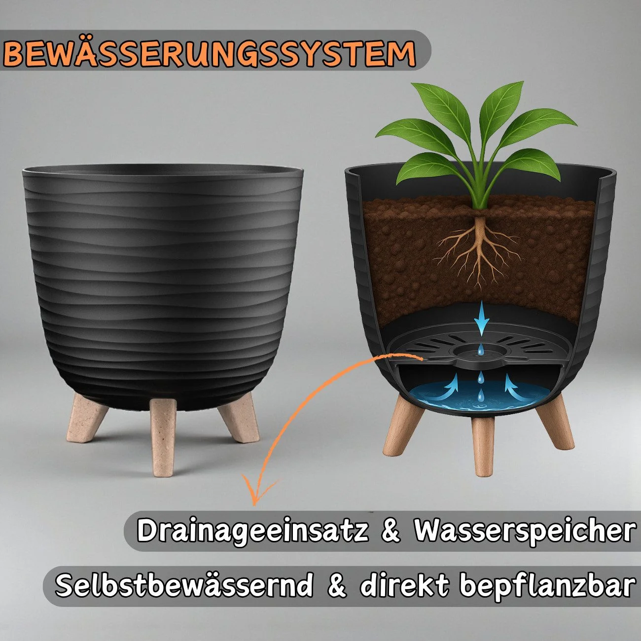 Blumentopf mit Füßen – rund, Wellenoptik, selbstbewässernd