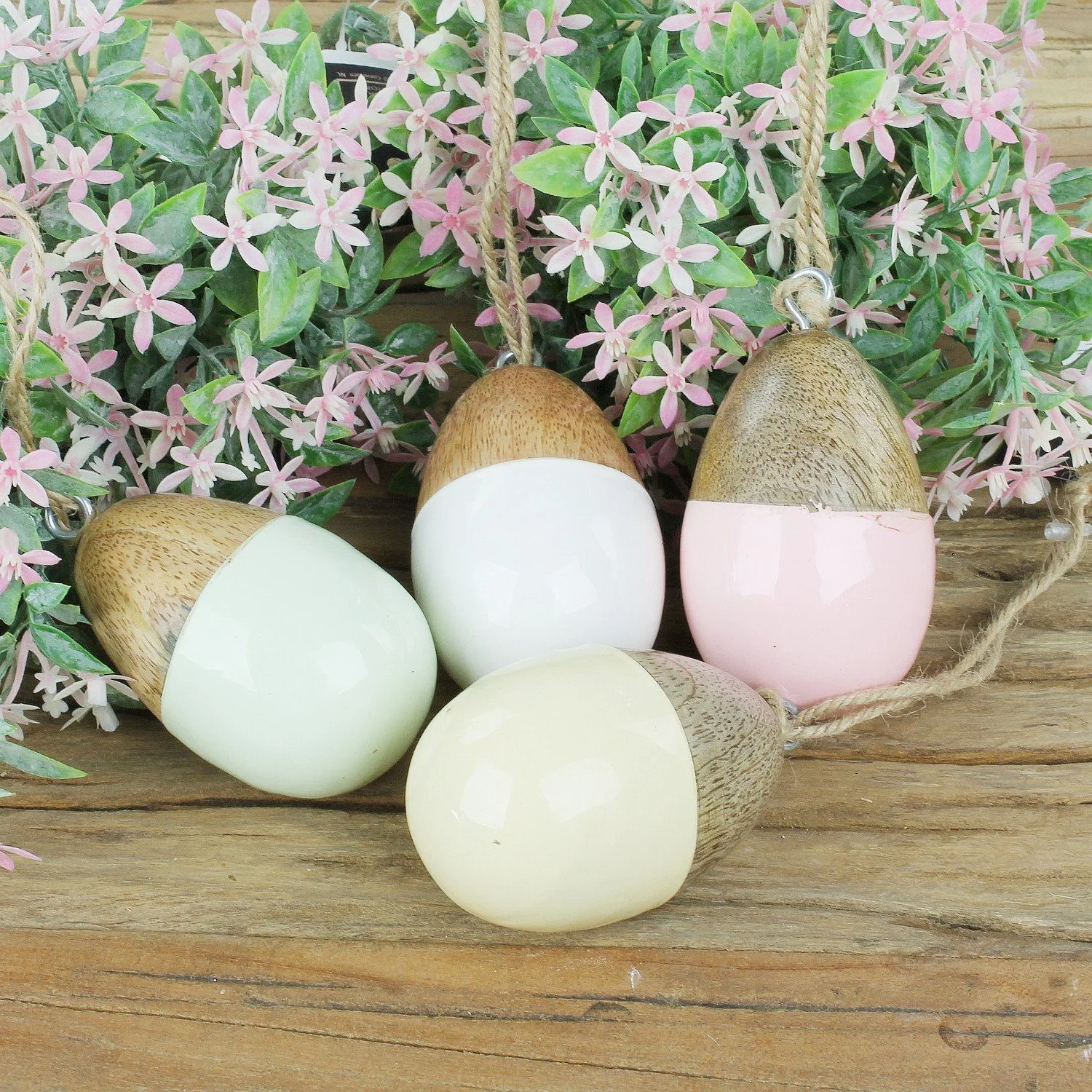 | Im Paket | 2 × Holz-Dekoei mit Sisalband |