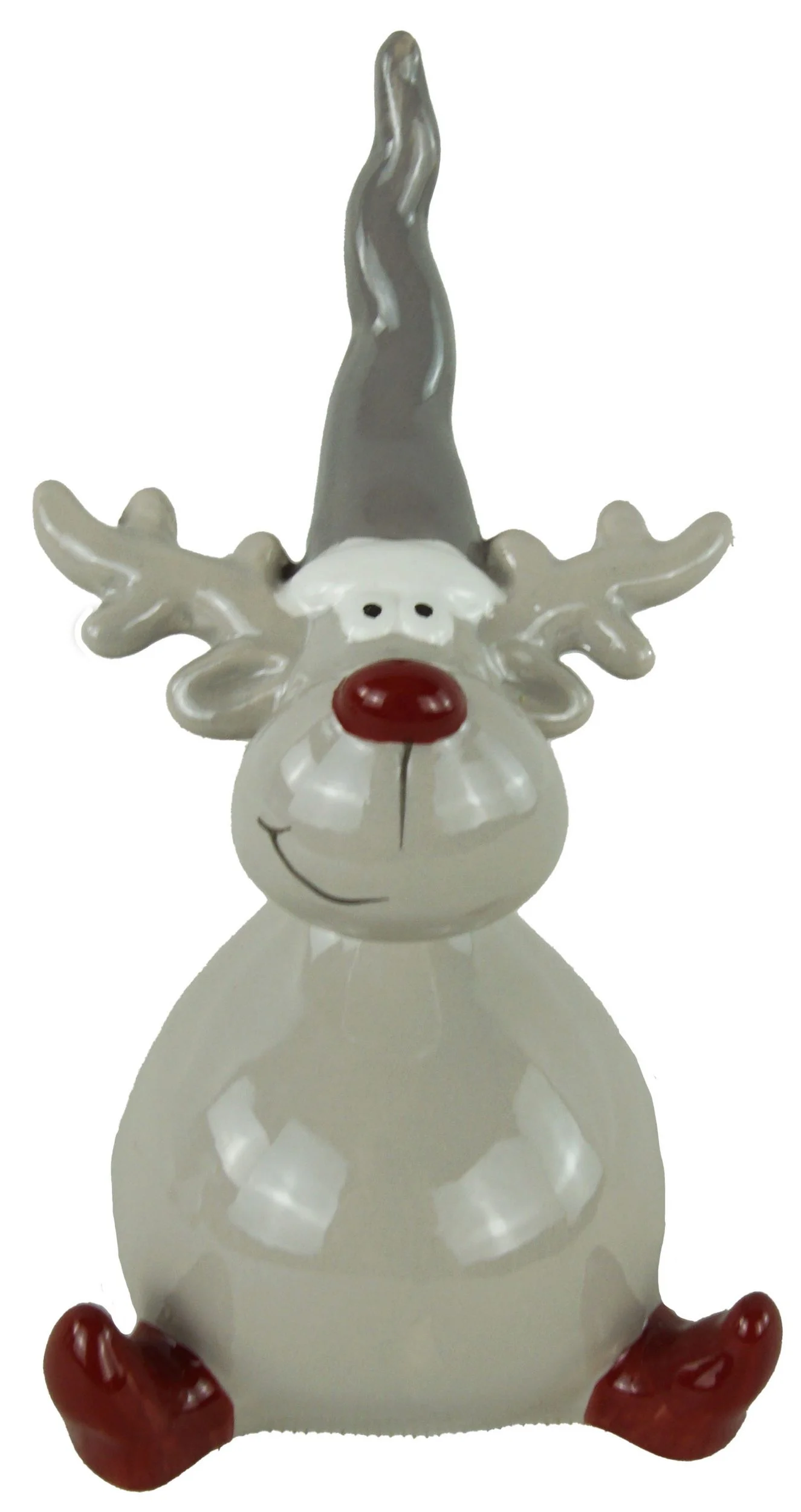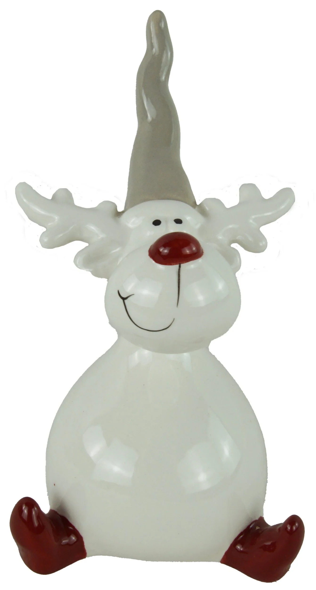 Liebevoll ausgearbeitete Details wie rote Nasen, rote Stiefel und graue Zipfelmützen verleihen den Figuren einen besonderen Charakter. Ob auf der Fensterbank, im Regal oder als Tischdekoration – die Elche sorgen für eine gemütliche, winterliche Atmosphäre in Ihrem Zuhause.