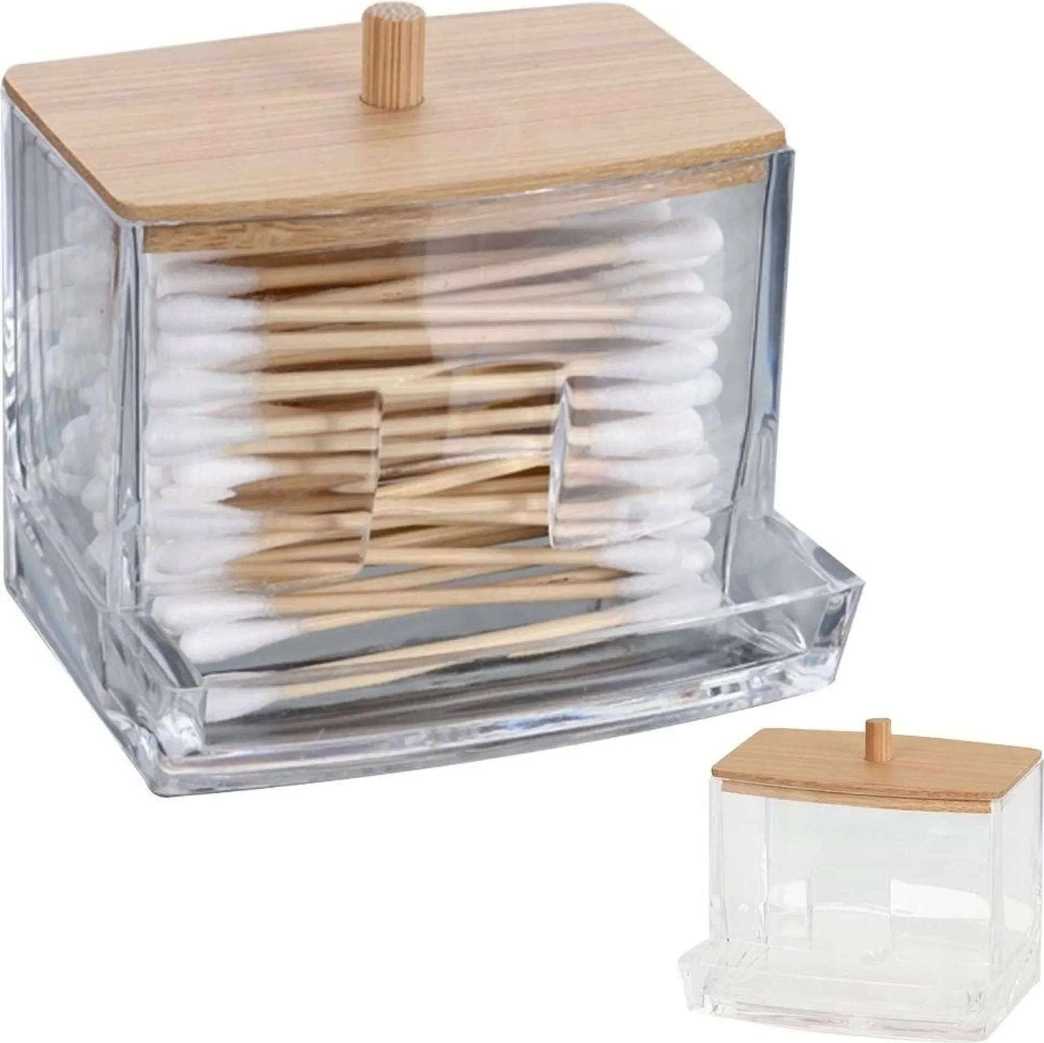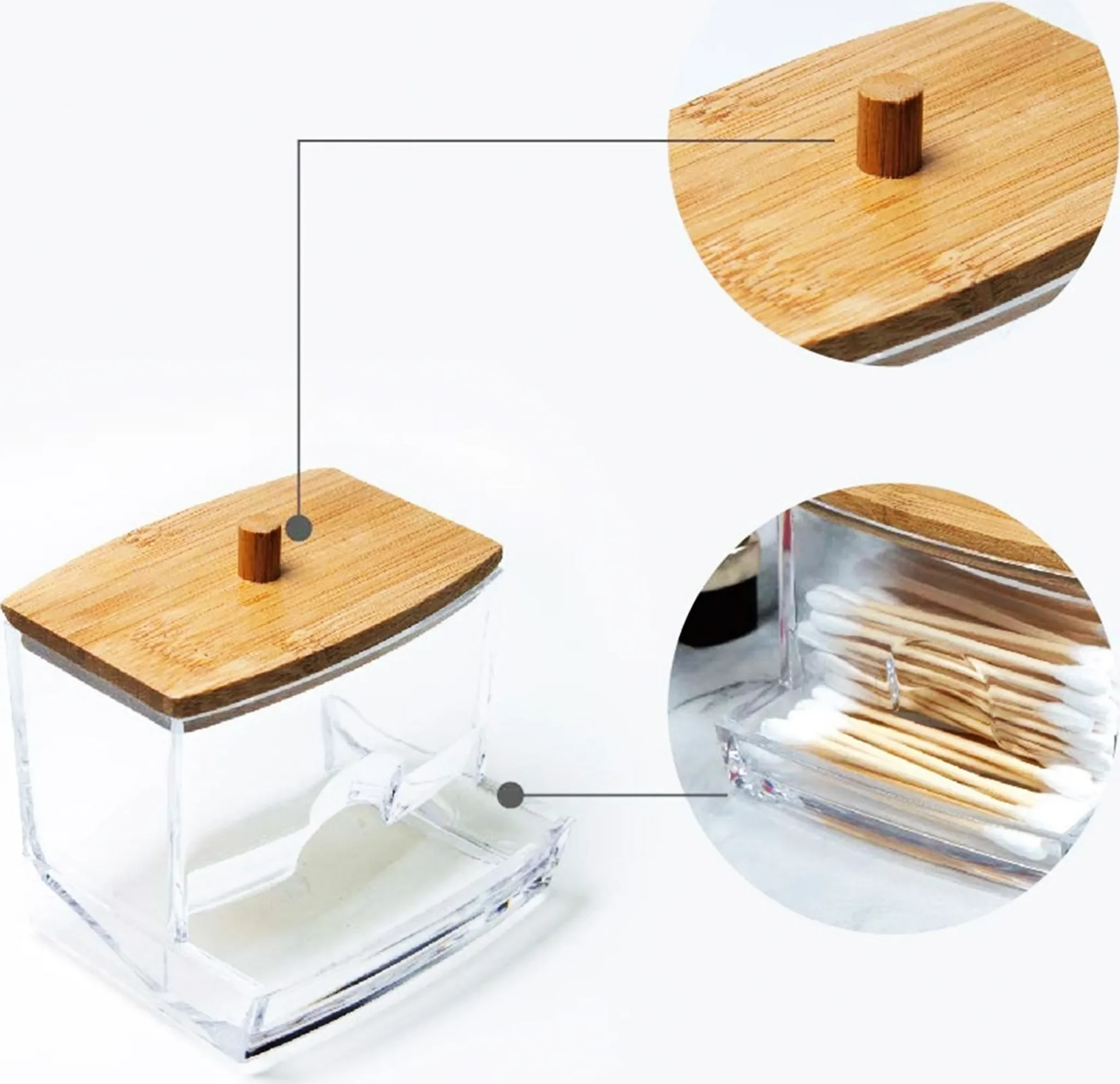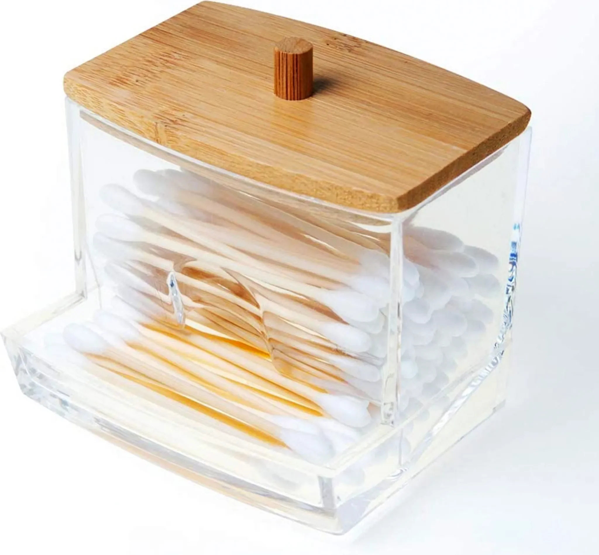 Eleganza Aufbewahrungsbehälter für Wattestäbchen – Acryl mit Bambusdeckel