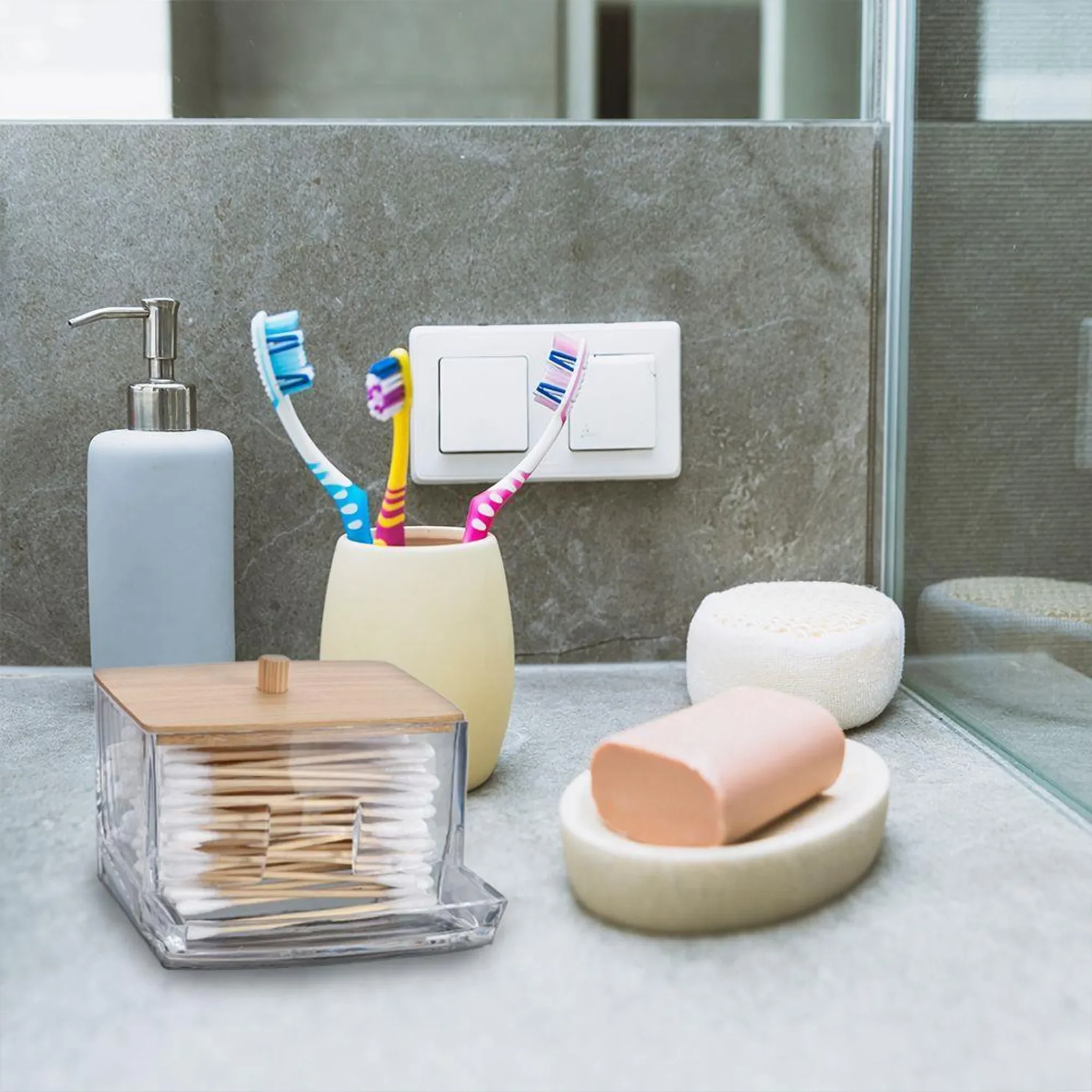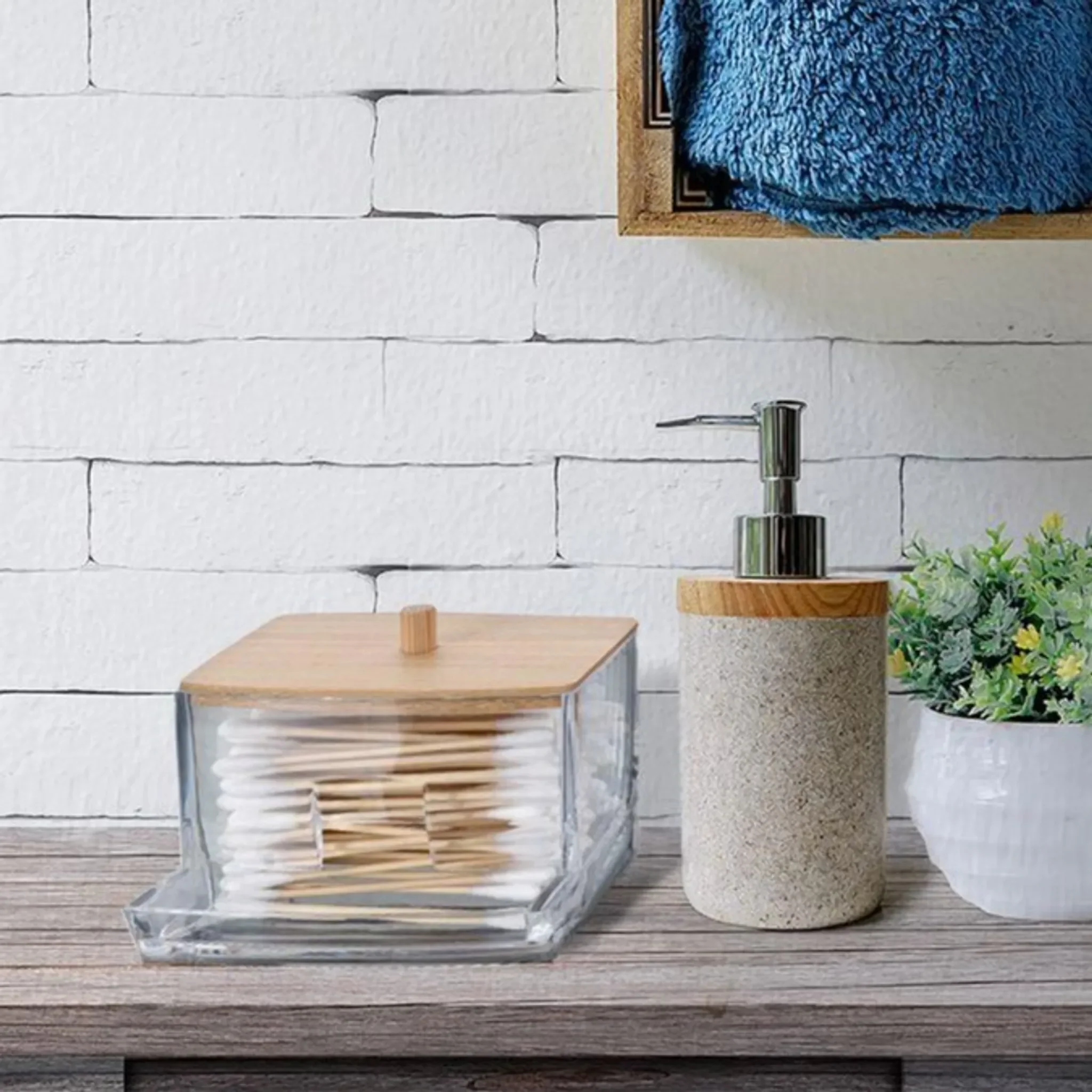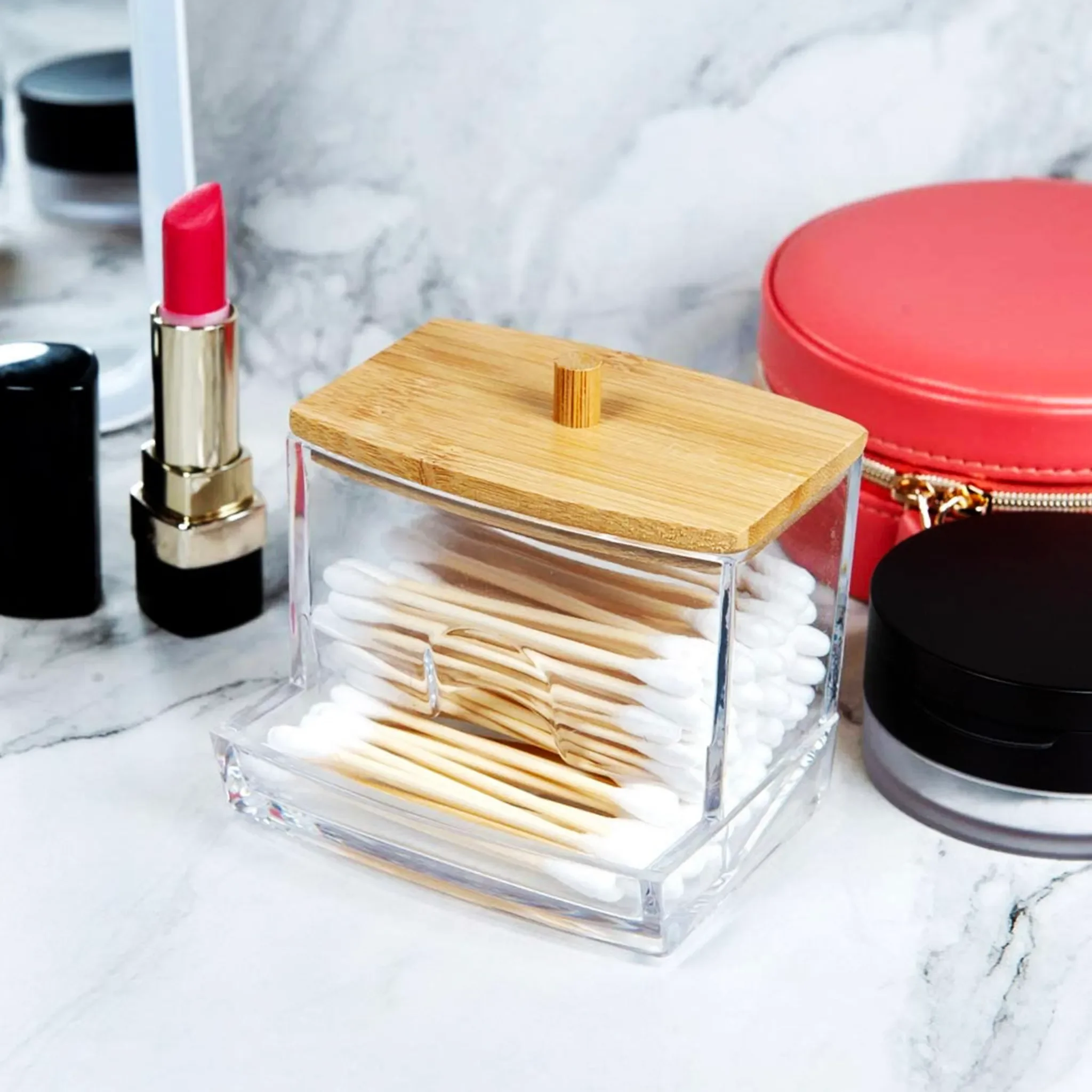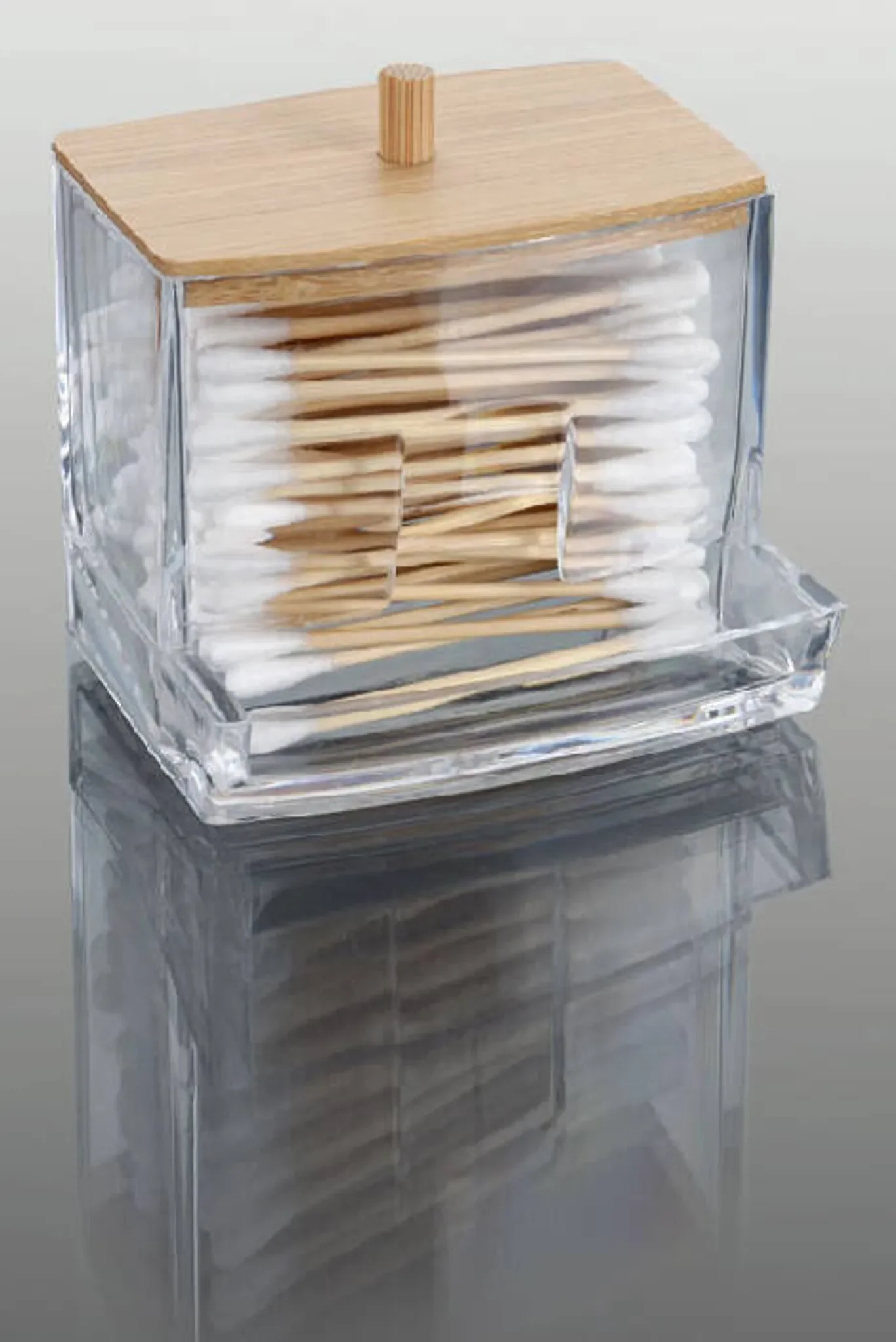 Eleganza Aufbewahrungsbehälter für Wattestäbchen – Acryl mit Bambusdeckel