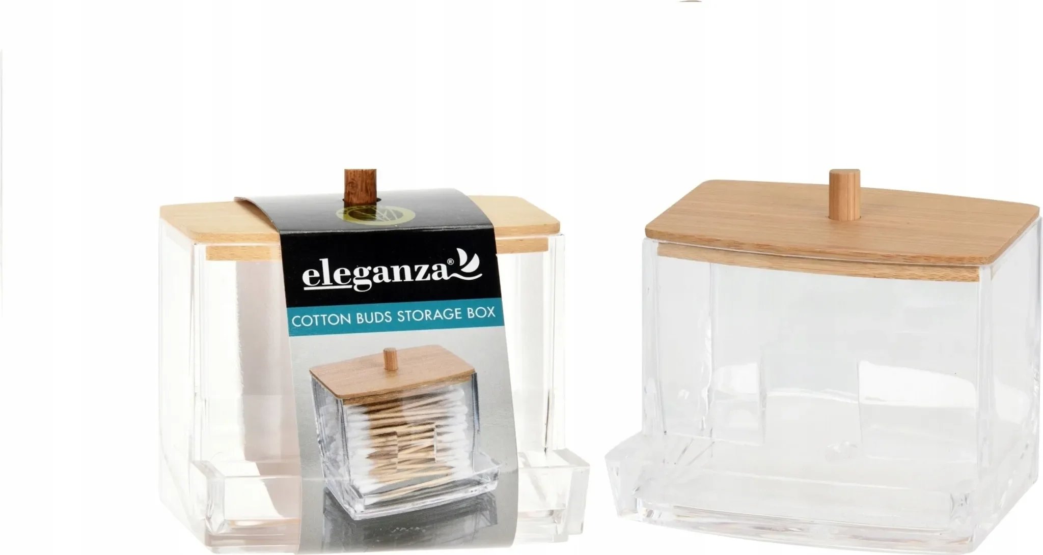 Produktinformationen "Eleganza Aufbewahrungsbehälter für Wattestäbchen – Acryl mit Bambusdeckel"