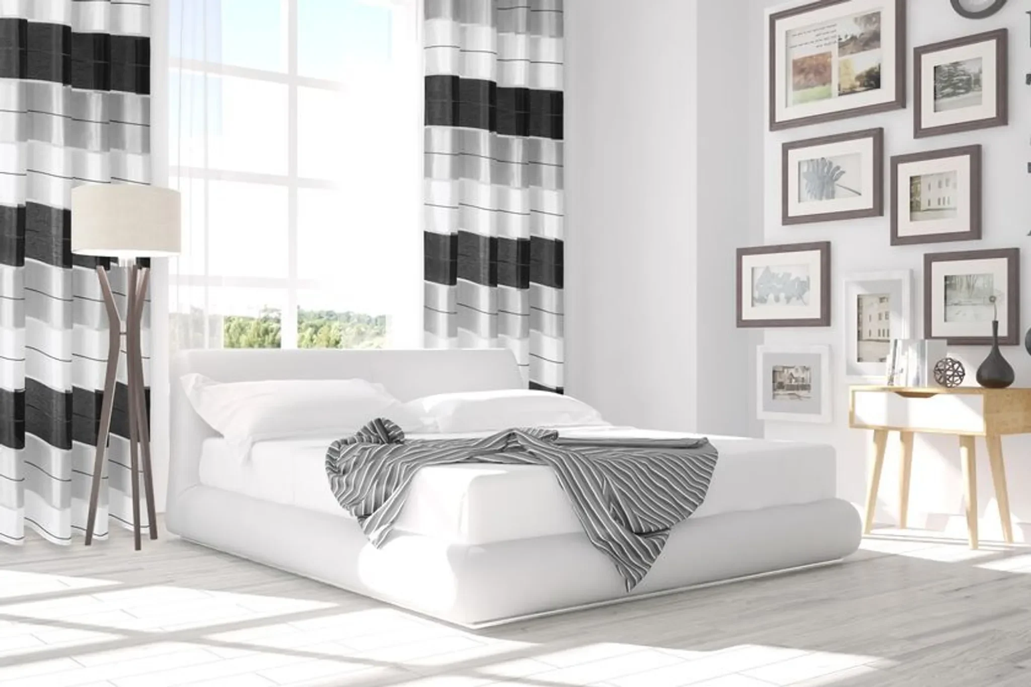 Der Fertigvorhang Dick Gestreift setzt mit seinen eleganten Weiß-, Grau- und Schwarztönen stilvolle Akzente in jedem Raum. Der Stoff ist halbtransparent und lässt angenehmes Licht durchscheinen, während er gleichzeitig für Privatsphäre sorgt. Die breiten Streifen verleihen dem Raum eine moderne Note und harmonieren mit klassischen wie modernen Einrichtungsstilen.