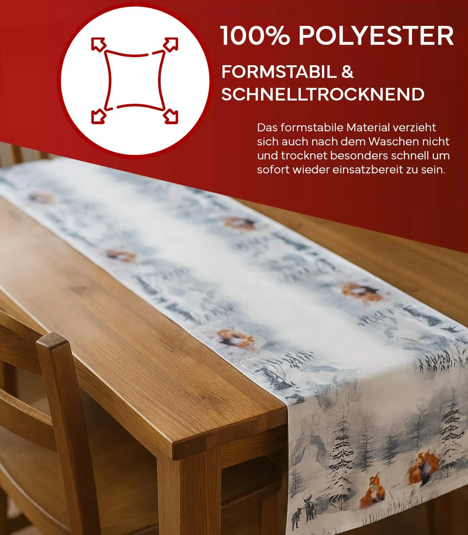 Bedruckter Tischläufer aus Polyester – festlich, pflegeleicht und langlebig